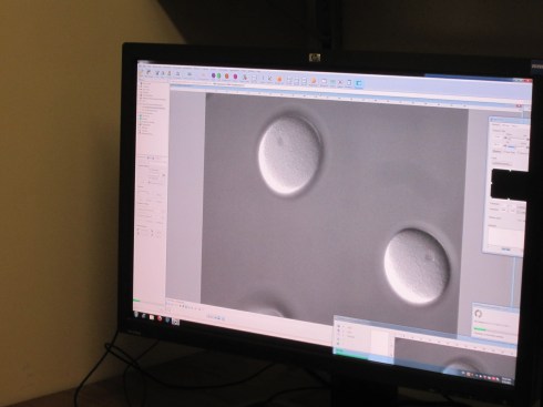This morning, I learned how to fertilize sea urchin eggs. And then my lab partners and I made a movie of it (title pending). A movie, that is, of the egg and sperm doing their thang under a fancy microscope (Zeiss inverted microscope, using differential interference contrast, if you’re into knowing that kind of thing).