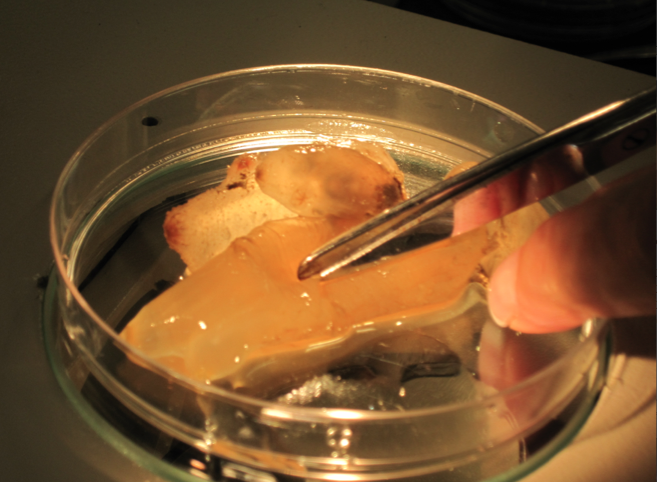 Then, we cut off its tunic (yes, they wear tunics, hence “tunicate”).