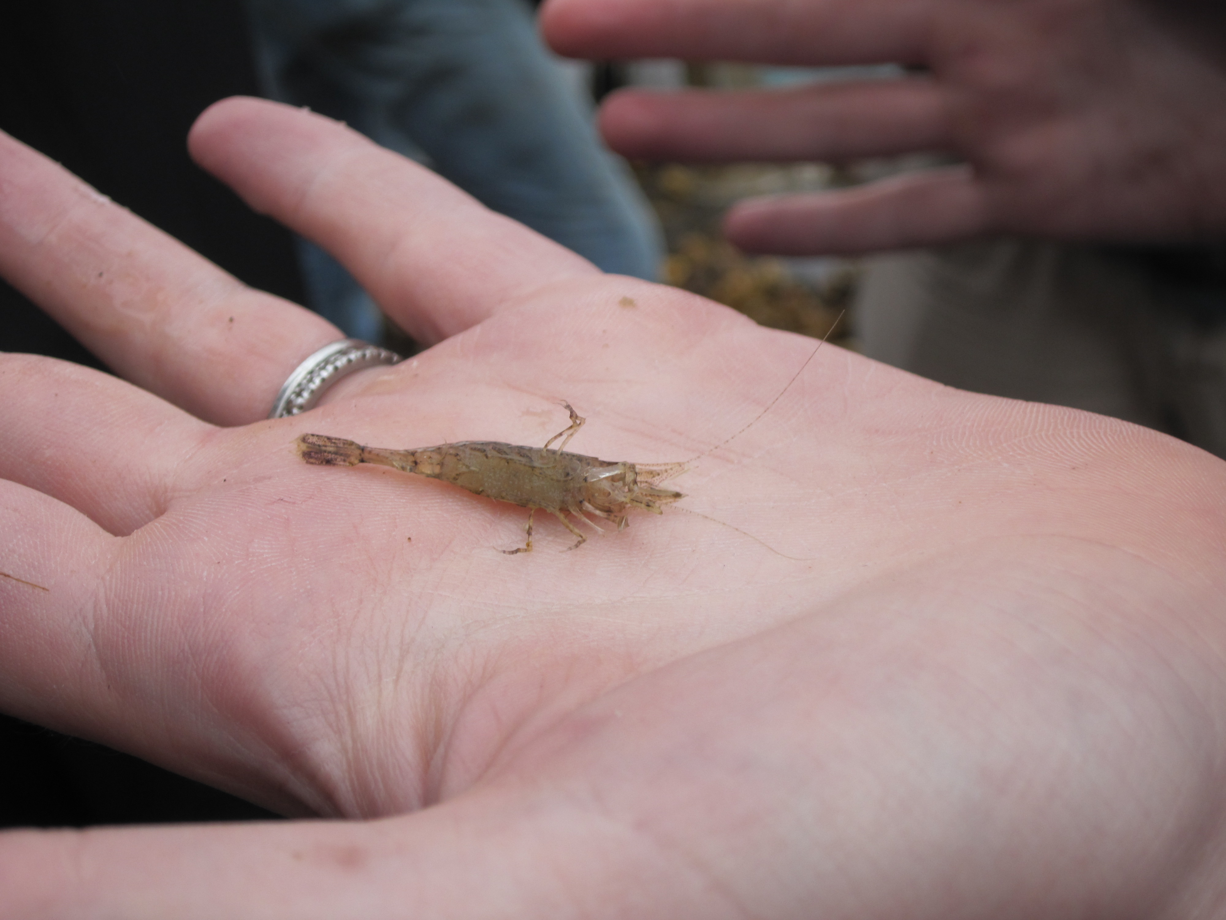 A small crustacean (not sure what this is? It kept jumping out of our hands. Slippery sucker)