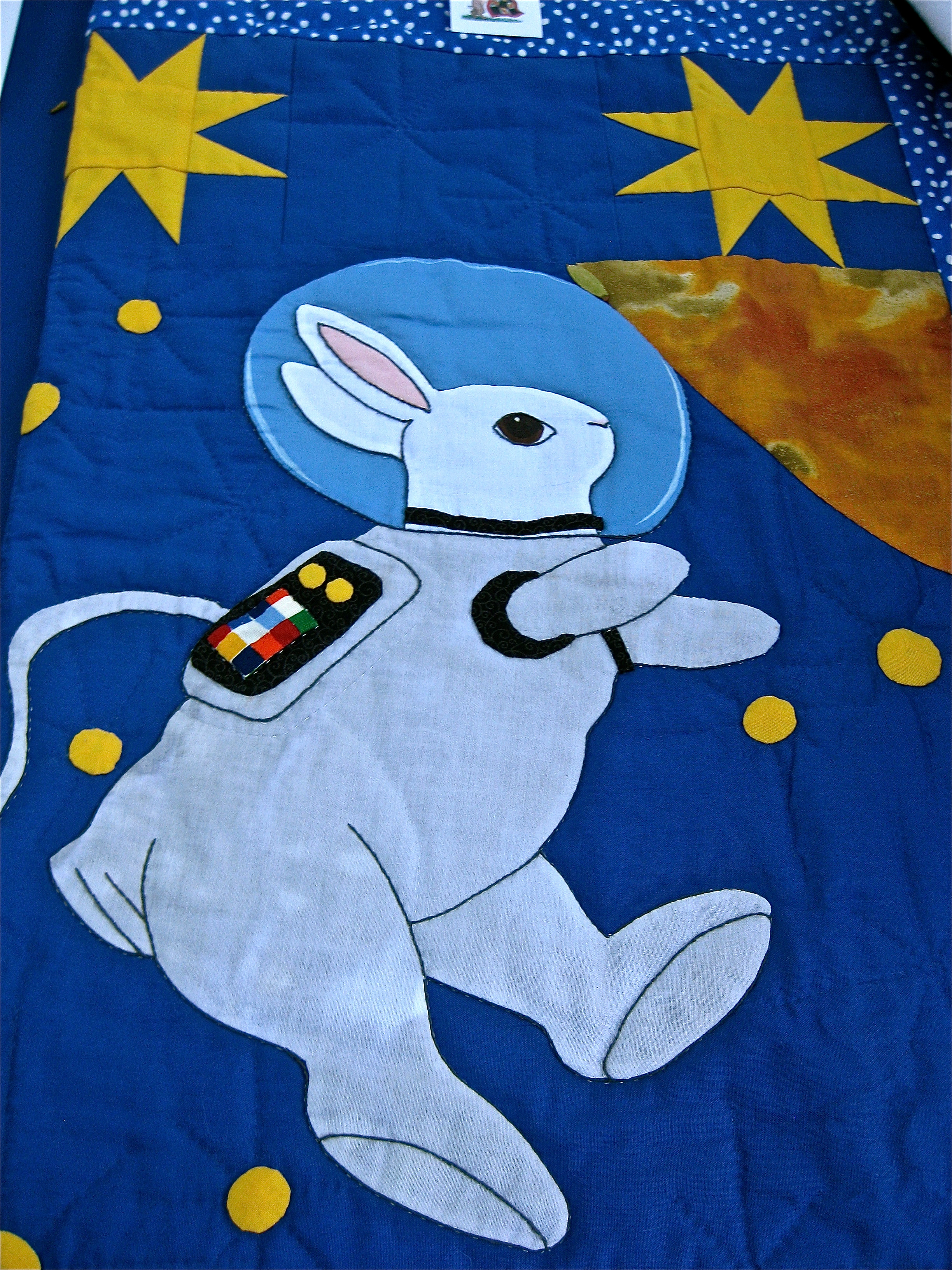 Also: Space crafts, courtesy of Etsy (depressed plush shuttle and bunnynaut quilt)