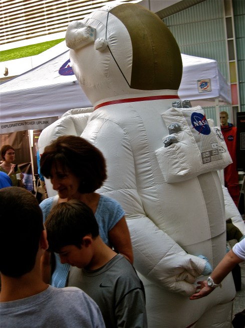 And, finally, an inflatable astronaut finds love (just kidding. That hand was guiding the blinded suit-wearer through the crowd)